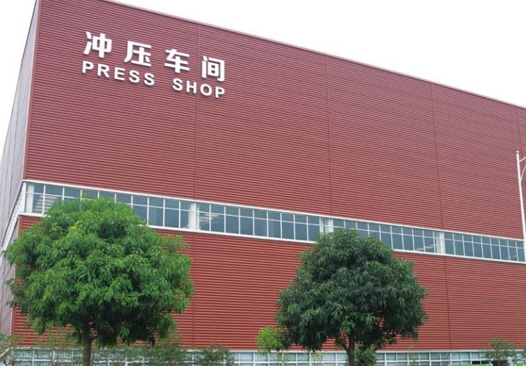 2014年柳州五菱汽車地處廣西柳州市該項目建設采用寶鋼鍍鋁鋅高耐候彩涂鋼板,顏色為楓葉紅,牌號為TDC51D+AZ,鍍鋁鋅量為150克/平方米。