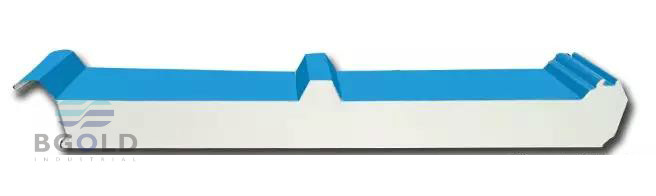 3、在第一塊板就位合適后,依次安裝就位第二塊,并應(yīng)主導(dǎo)風(fēng)向鋪設(shè)。板間密封時可用鐵釘臨時固定在夾芯板側(cè)面。