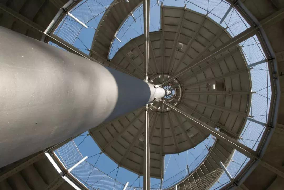 結構設計的理念和我們常見的旋轉鋼樓梯類似,就是把螺旋的內側做強,因為傳力路勁短,效率較高,有點懸挑的意思。