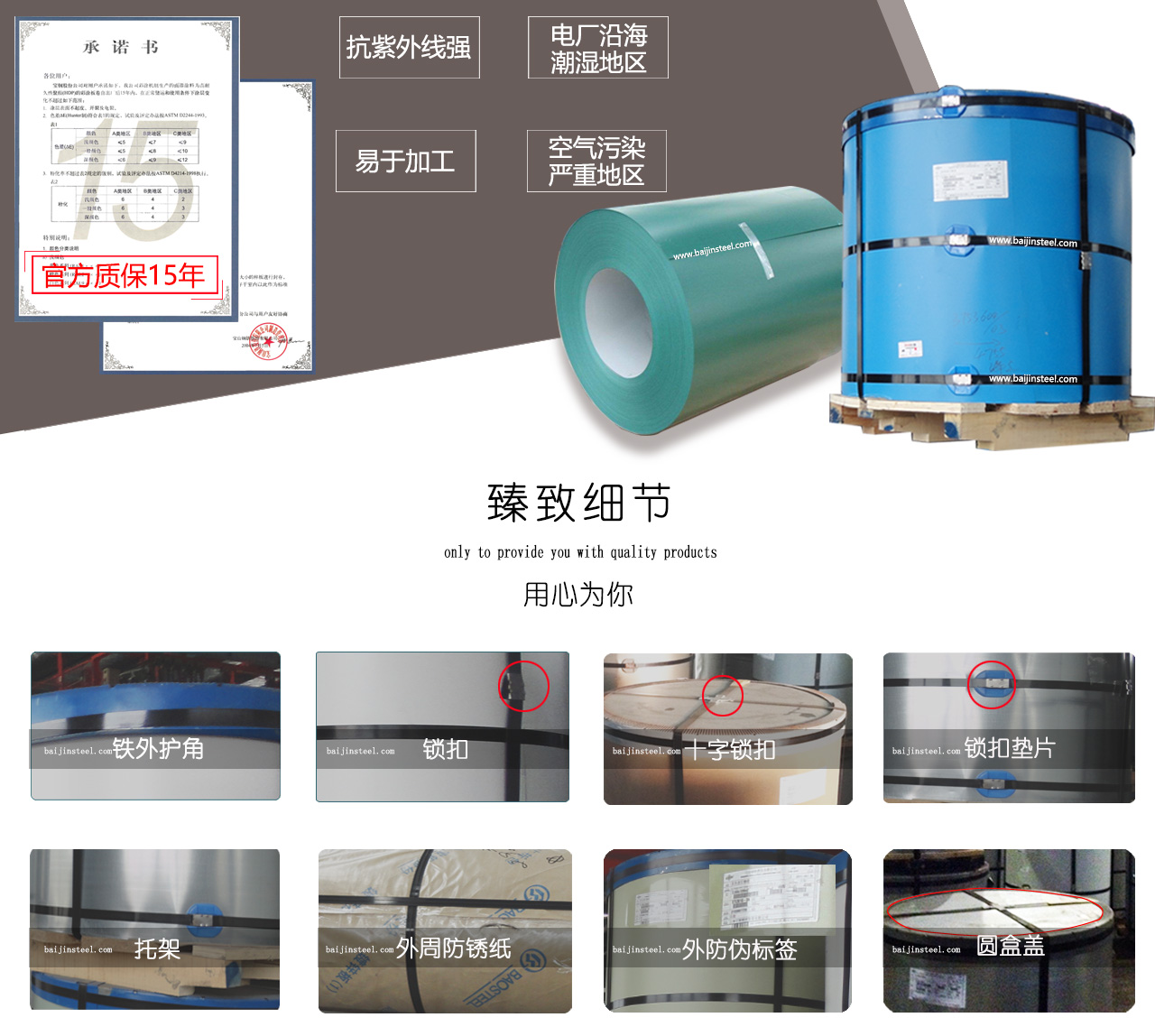注:本網(wǎng)站數(shù)據(jù)部分來源寶鋼彩涂板企業(yè)標(biāo)準(zhǔn)BQB/440 -2014 ,寶鋼彩涂板產(chǎn)品手冊(cè),及工程案例。